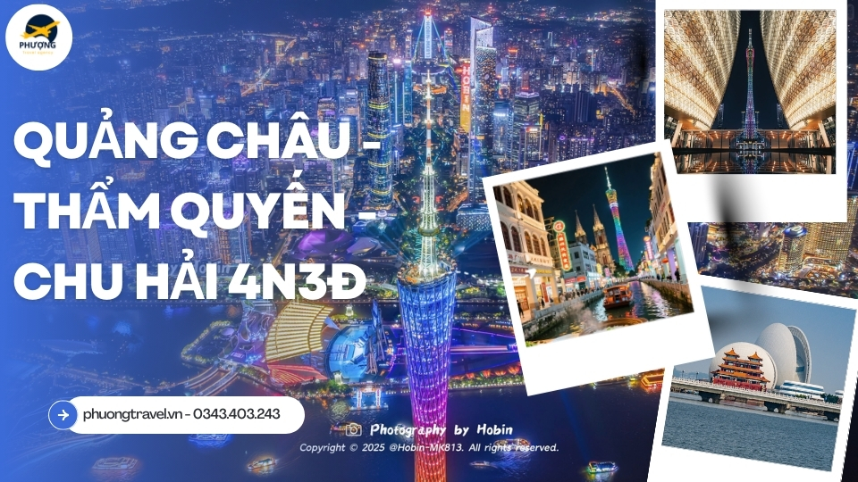 Tại hành trình tour Quảng Châu tại Phượng Travel, du khách sẽ được tham quan những địa danh nổi tiếng như Tháp Truyền hình Quảng Châu – biểu tượng kiến trúc hiện đại của thành phố, Công viên Việt Tú với khung cảnh xanh mát và tượng Ngũ Dương nổi tiếng, hay Chùa Lục Dung cổ kính mang đậm dấu ấn Phật giáo. Bên cạnh đó, du khách còn có cơ hội khám phá các khu chợ đêm sầm uất, thưởng thức ẩm thực Quảng Đông đặc sắc và cảm nhận nhịp sống sôi động của thành phố.