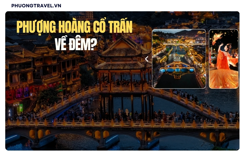 Đến Phượng Hoàng Cổ Trấn bạn sẽ có cảm giác như chạm bước vào quá khứ và được tách khỏi nhịp sống đô thị vội vã. Ban ngày bạn có thể thong thả dạo quanh những cây cầu đá bắc ngang sông ngắm nhìn thuyền gỗ chậm chậm lướt qua và lắng nghe tiếng đời sống yên bình. Đến khi màn đêm buông xuống, hàng ngàn chiếc đèn lồng đỏ được thắp sáng dòng bờ sông và phố cổ biến không gian nơi đây thành bức tranh lung linh huyền ảo đậm chất hoài cổ.