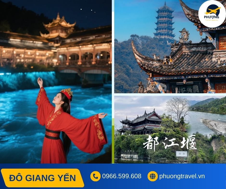 Đô Giang Yển là một trong những điểm đến đặc biệt của tỉnh Tứ Xuyên nằm bên dòng sông Mân hiền hòa. Nơi đây hội tụ giữa kỳ quan kỹ thuật cổ đại và thiên nhiên hoang dã đầy sức sống. Công trình thủy lợi Đô Giang Yển khổng chỉ là minh chứng trí tuệ vượt thời gian của người Trung Hoa Cổ Đại mà còn mang đến vẻ yên bình và trù phú cho vùng đất suốt 2000 năm. Nơi đây được Unesco công nhận là di sản văn hoá thế giới với nhiều kiến trúc đặc trưng và vô cùng độc đáo. Hành trình khám phá Đô Giang Yển sẽ mang đến cho bạn trải nghiệm văn hoá độc đáo, và hoà mình giữa thiên nhiên xanh mát của Tứ Xuyên.
