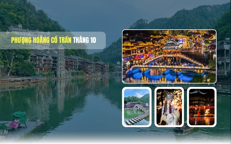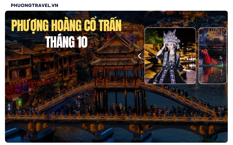 Phượng Hoàng Cổ Trấn tháng 10 có gì mà khiến nhiều du khách phải mê mẩn mỗi khi mùa thu về. Phượng Hoàng cổ trấn khi vào thu là lúc tiết trời mát mẻ cùng bầu trời trong xanh và cây cối bắt đầu chuyển sang sắc vàng đỏ rực mang đến vẻ đẹp lãng mạn đẹp tựa bức tranh thuỷ mặc.