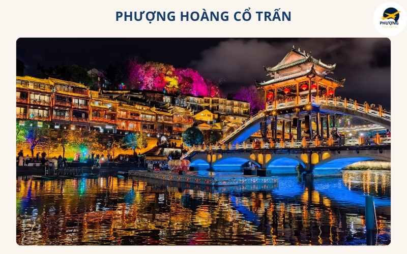 Khi màn đêm buông xuống thì Phượng Hoàng cổ trấn như được khoác lên mình hàng ngàn chiếc đèn lồng đỏ rực với ánh sáng phản chiếu xuống dòng Đà Giang mang đến khung cảnh lãng mạn huyền ảo.