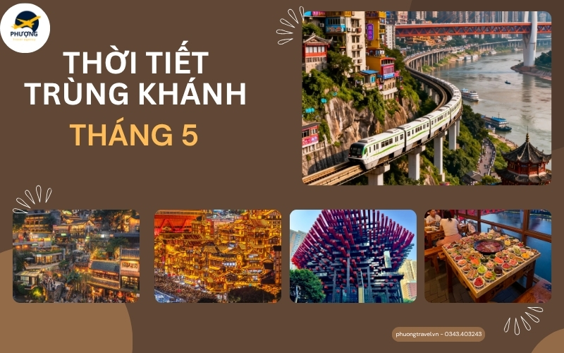 Tháng 5 là thời điểm Trùng Khánh bước vào giai đoạn cuối xuân và chuẩn bị chuyển sang mùa hè. Lúc này thời thiết Trùng Khánh vào tháng 5 khá dễ chịu với nền nhiệt trung bình dao động từ 20 – 28°C, không quá nóng và lượng mưa vẫn chưa nhiều như những tháng cao điểm mùa hè. Vì vậy lúc này là thời điểm lý tưởng để bạn khám phá thành phố Trùng Khánh nổi tiếng tại Trung Quốc.