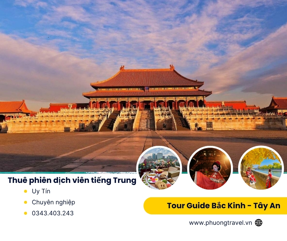 Phượng Travel là đối tác chuyên cung cấp phiên dịch viên tiếng Việt tại Trung Quốc – đặc biệt tại Bắc Kinh, Tây An, Thượng Hải, Hàng Châu và nhiều thành phố lớn khác. Với hơn 10 năm kinh nghiệm, chúng tôi cam kết mang đến chuyến đi an toàn, đáng nhớ và trọn vẹn nhất cho du khách Việt.