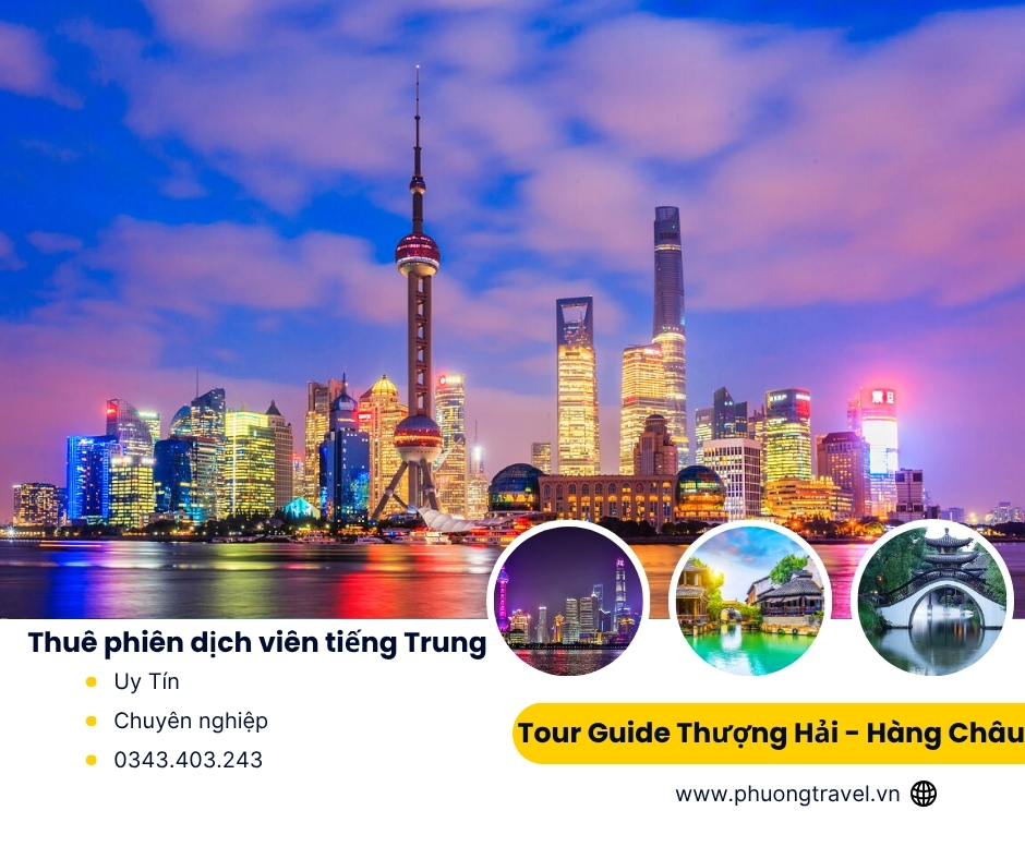 Khi du lịch tự túc tại Thượng Hải – Hàng Châu việc thuê phiên dịch viên Tour Guide sẽ giúp chuyến đi của bạn trở nên dễ dàng trọn vẹn. Chúng tôi không chỉ giúp bạn hỗ trợ giao tiếp với người bản địa mà còn chia sẻ nhiều kiến thức thú vị về văn hoá lịch sử cũng như ẩm thực tại địa phương. Với kinh nghiệm phong phú và khả năng sử dụng thành thạo tiếng Trung, dịch vụ phiên dịch viên Tour Guide tự túc giúp bạn tiết kiệm thời gian và tối ưu chi phí và hướng dẫn bạn đến những điểm đến nổi tiếng như Bến Thượng Hải, phố cổ Tô Châu, Tây Hồ – Hàng Châu một cách chân thực và đầy thú vị. Đây chính là người bạn đồng hành lý tưởng cho du khách Việt muốn trải nghiệm Trung Hoa theo cách riêng, tự do nhưng vẫn an tâm và tiện lợi.