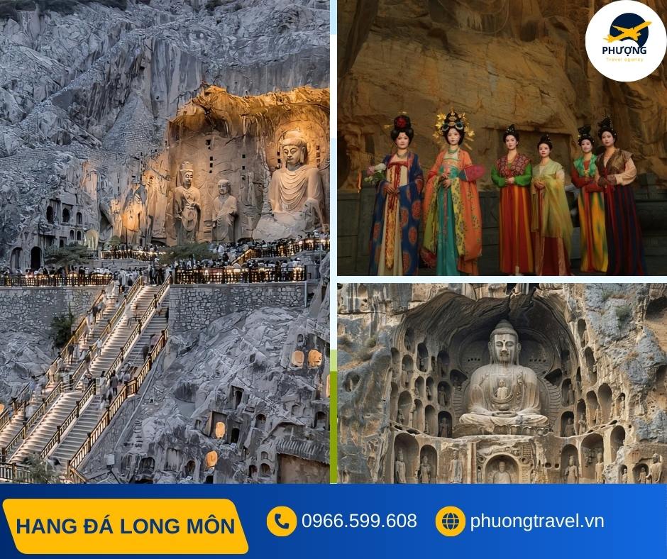 Khám phá Hang đá Long Môn là một trong những tuyệt tác điêu khắc Phật giáo trải qua hàng nghìn năm lịch sử giữa lòng Trung hoa cổ kính. Địa đanh này nằm ở bên dòng sông Y thuỷ hiền hoà với một quần thể hang động Long Môn như một bảo tảng nghệ thuật đá vĩ đại bậc nhất thế giới. Nơi này nằm ở Lạc Dương tỉnh Hà Nam lưu giữ tới hàng trăm nghìn kho tượng phần được chạm khắc tinh xảo đứng vững qua hàng nghìn năm lịch sử. Mỗi đường nét trên đá như kể về cấu chuyện đức tin và nghệ thuật tâm linh thời Đường – Tuỳ. Đến đây bạn không chỉ được ngắm trọn vẻ đẹp của tuyệt tác điêu khắc cổ đại mà còn cảm nhận hơi thở nền văn hoá Phật Giáo luôn trường tồn với thời gian. Trong bài viết này, Phượng Travel sẽ đưa bạn đi một hành trình chi tiết khám phá Hang đá Long Môn. Từ lịch sử hình thành đến kiến trúc, kinh nghiệm tham quan cho đến những trải nghiệm độc đáo.