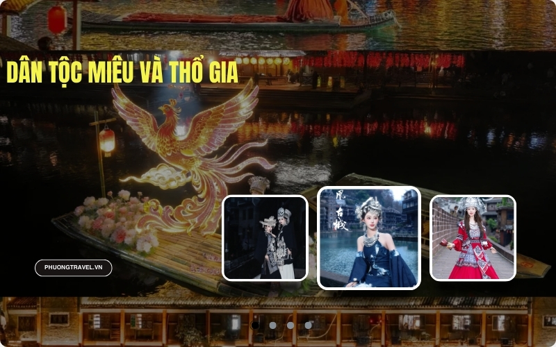 Phần lớn cư dân sinh sống tại đây là người Miêu nổi bật với những trang phục truyền thống cùng sắc xanh và khăn đội trắng đặc trưng. Họ nổi tiếng với những làng nghề thủ công tinh xảo đặc biệt là trang sức bạc cùng đồ thổ cẩm. Khi ghé thăm du lịch tại Phượng Hoàng cổ trấn bạn hãy ghé thăm các sạp hàng lưu niệm chọn mua các đồ trang sức, váy thổ câm hay món quà nhỏ mang đậm dấu ấn dân tộc. Đây không chỉ là quà tặng ý nghĩa mà còn là cách để bạn lưu giữ ký ức về hành trình khám phá miền đất cổ kính.