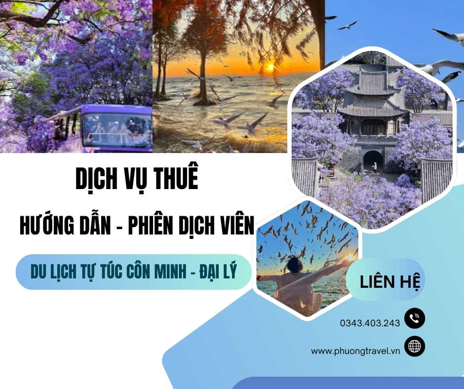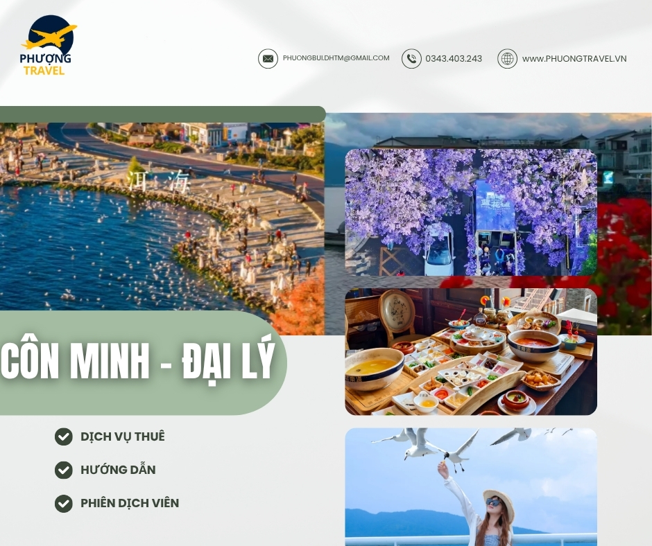 Côn Minh Đại Lý là một trong những địa điểm được nhiều du khách yêu thích thiên nhiên văn hoá và ẩm thực độc đáo. Tại đây, khí hậu quanh năm mát mẻ trong đó Côn Minh được mệnh danh là Thành phố mùa xuân và sở hữu nhiều danh lam thắng cảnh đẹp. Phượng Travel chuyên cung cấp dịch vụ hướng dẫn và phiên dịch viên du lịch tự túc ở Côn Minh – Đại Lý để bạn có hành trình du lịch thoải mái thuận tiện và đầy kỷ niệm đáng nhớ.