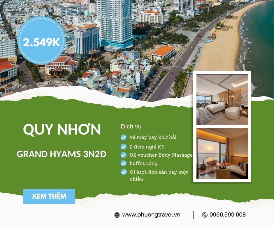 Combo Quy Nhơn 5 sao Grand Hyams 3N2Đ + vé Máy bay giá chỉ từ 2.549k/Khách