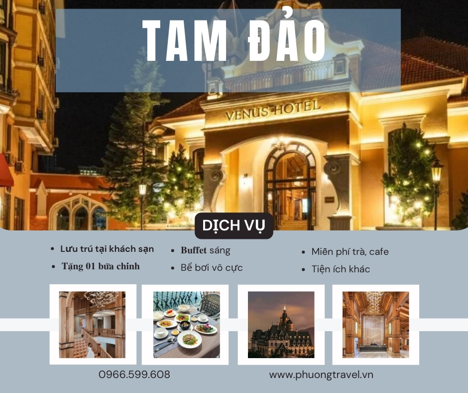 Combo Venus Tam Đảo 2N1Đ – Nghỉ Dưỡng Lâu Đài Trung Tâm Chỉ Từ 1.100k/Người