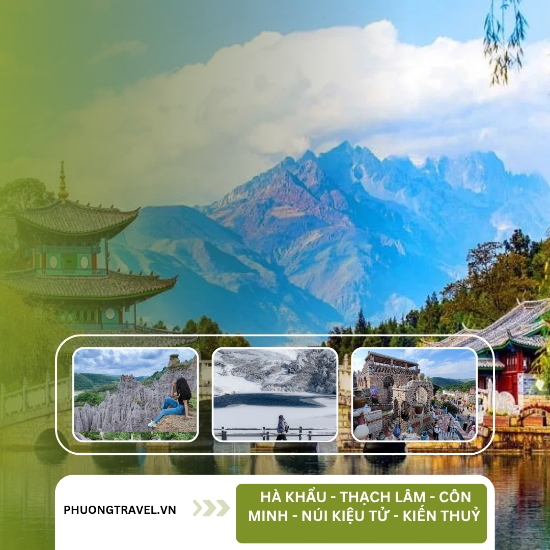 Tại Thạch Lâm, du khách sẽ ngỡ ngàng trước “rừng đá khổng lồ” được hình thành từ cách đây hàng trăm triệu năm tạo nên khung cảnh độc nhất vô nhị như lạc vào thế giới cổ tích. Sau đó bạn hành trình đến Côn Minh là “thành phố mùa xuân vĩnh cửu” để tận hưởng khí hậu mát mẻ quanh năm. Tiếp đó, Núi Kiệu Tử sẽ mang đến hành trình leo núi ngoạn mục là nơi du khách có thể ngắm nhìn toàn cảnh thiên nhiên hùng vĩ và tận hưởng cảm giác hòa mình giữa mây trời. Điểm dừng chân cuối cùng là Kiến Thủy một vùng đất yên bình, giàu truyền thống văn hóa. Điểm dừng chân này sẽ khép lại chuyến đi đáng nhớ, không chỉ thăm quan thắng cảnh mà còn là cơ hội để du khách trải nghiệm ẩm thực hấp dẫn tìm hiểu văn hoá độc đáo của địa phương và tận hưởng trọn vẹn vẻ đẹp Tây Nam Trung Quốc.