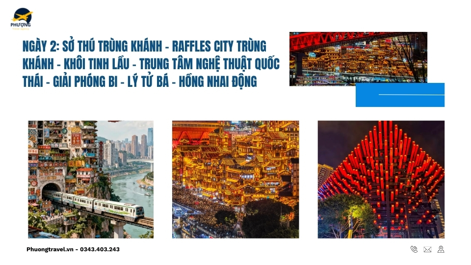 Không chỉ dừng lại ở những khối kiến trúc chồng chéo đầy thách thức mọi định vị GPS, du lịch Trùng Khánh 4 ngày 3 đêm còn là hành trình giúp bạn chạm đến món Lẩu Trùng Khánh ngon trứ danh và thế giới ẩm thực đường phố vô cùng đa dạng. Chúng tôi cam kết dịch vụ chất lượng vé máy bay khứ hồi, khách sạn trung tâm cao cấp và HDV du lịch suốt tuyến. Bạn đừng bỏ lỡ cơ hội sở hữu tấm vé khám phá Trùng Khánh thành phố 8D ngoài đời thực với mức giá ưu đãi nhất tại Phượng Travel. Hãy Book ngay tour Trùng Khánh Mono để cùng phá đảo mê cung 8D đầy quyến rũ và mê hoặc.
